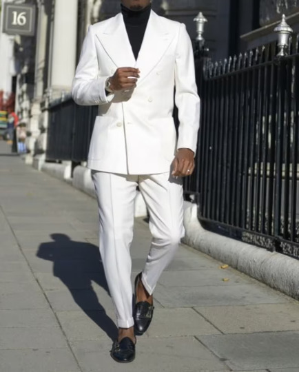 Classic & luxurious Men Suits White Double Breasted Suits Slim Groom Wedding Dinner Suits Groom Wear Jacket pants